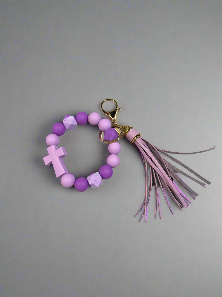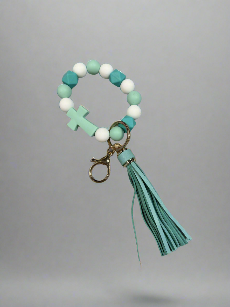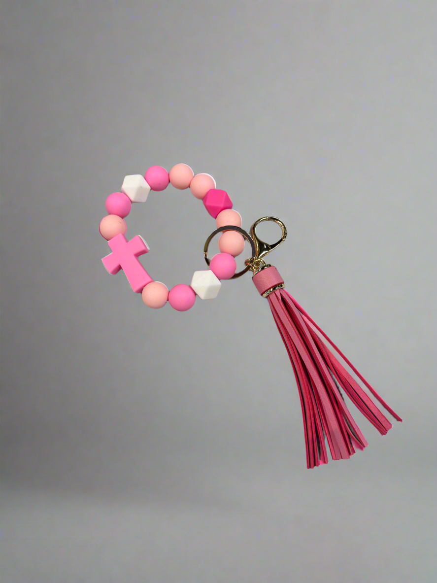Beaded Tassel and Cross Keychain